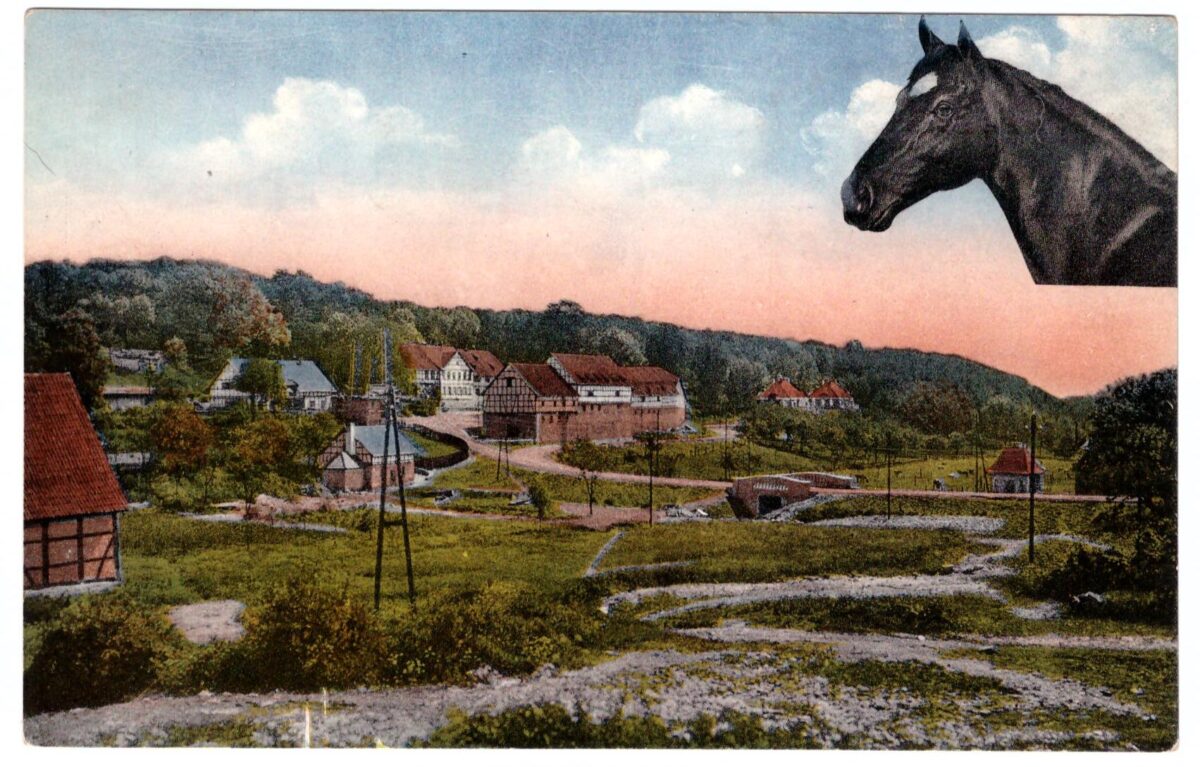 Gutshof Altefeld mit den neuen Gebäuden des Gestüt Altefeld 1922, originale Postkarte ungelaufen.